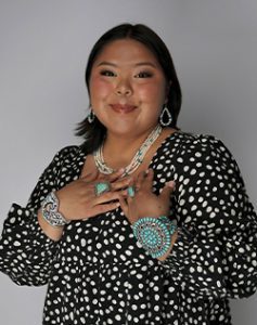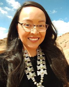 Yà’àt’ééh, my name is Mariessa Fowler. Naashashí nishłį́ dóó Tł’ááshchí’í ’éí báshíshchíín dóó Nát’oh Dine’é Táchii’nii’éí dashicheii nááná Naadą́ą́’ łigai Naasht’ézhí dine’é dashinalí. I am born of the Bear Enemies clan of the Tewa people, born for the Red Cheek clan, my maternal grandfathers are of the Tobacco Red Running into Water clan, and my paternal grandfathers are of the White Corn Zuni people. I am from Coppermine, AZ which is a community on the Navajo reservation near Page, AZ.