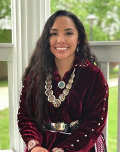 Yá’át’ééh! Shí éí Chelsie Fowler yinishyé. To’aheedliinii nishlí. Deeshchíiníi bashishchiin. Tse’njikini dashichei. Naasht’ezhí tábąąhá dashinalí. Akot’éego diné asdzáán nishlí. Chilchinbetó, Arizona déé’ naashá. Shí éí Kinłánídí NAU biziilgo ólta’ígii, ííníshta’. Environmental Engineer ba ííníshta’. Ahééhee’. Hello. My name is Chelsie Fowler and my four clans (kinship) are: Water Flow Together (mother’s clan), Red Streak People (father’s clan), HoneyComb Rock People (maternal grandfather), and Zuni EdgeWater (paternal grandfather). These clans are what shape me into a determined Navajo woman. I am originally from Chilchinbeto, Arizona. I also attend Northern Arizona University in Flagstaff, Arizona and am majoring in Environmental Engineering.